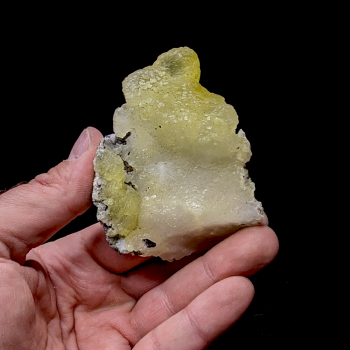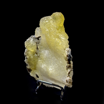 Flat sample of yellow and white colored brucite.It comes from Qilla Saif Ullah, Baluchistan, Pakistan.This piece measures 7.8 cm high by 5.7 cm wide and 0.9 cm at the thickest.Its weight is 51 grams.Additional photos and online ordering on the DGminéraux...
