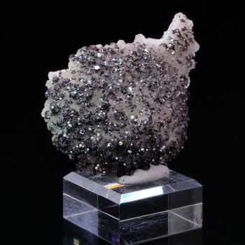 Very architectural set of rare acanthite crystals of a beautiful brilliance, from the Imiter silver mine in Morocco. 3 x 3,3 x 0,9 cm. Reference : 2793-LM2T