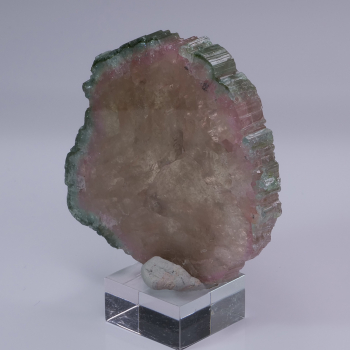 Beautiful slice of Tourmaline from Brazil with the dark green turn, then very light green, and the heart between pink and yellow. Video to see to realize the translucency of the piece.5 x 4,90 x 0,70 cmReference : 2736