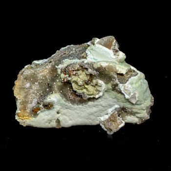 Uncommon sample of aurichalcite with a fine overcrystallization of hemimorphite.It comes from the Mechelen mine, Saint Laurent le Minier, Gard, France.This specimen is 4.2cm long, 2.8cm wide and 1.5cm thick.Its weight is 20 grams.Reference: 0608Order online on the DGmineraux...