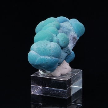 Very particular specimen for this discovery in the Congo. In addition to Chrysocolla, which is the last stage of pseudomorphosis, there is also Malachite which remains on the surface in some places and is also covered with brilliant micro Quartz. This piece is very aesthetic because it has aerial...