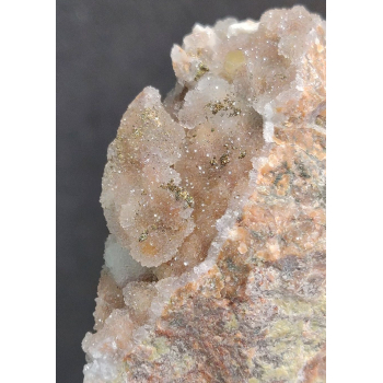Chalcopyrite, Quartz Vensat quarry (63) FranceThat quartz may also be called chalcedony, as the cristals are very thin. Aesthetic piece. Rare for that locality, better known for its fluorites. The matrix is granite.