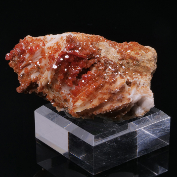 Vanadinite from Morocco with crystals of a pretty red color, all on Baryte white crenellated.7,70 x 6,20 x 4,20 cmReference : 2890
