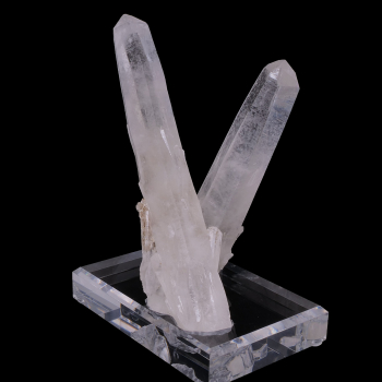 Two very large intact quartz points forming a cross. The crystals are colorless, translucent and glossy. This piece is presented on its custom-made base made by us.16,80 x 15,20 x 8,40 cmReference : 2900
