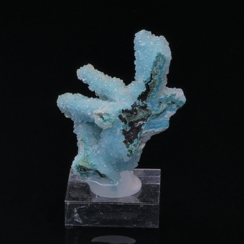 Superb specimen having undergone two replacement phases: Azurite was replaced by Malachite, then Malachite by Chrysocolla. The surface is inlaid with colorless crystals of Quartz that offer an incredible shine to the piece.4,60 x 3,50 x 2,30 cmReference : 3063
