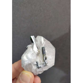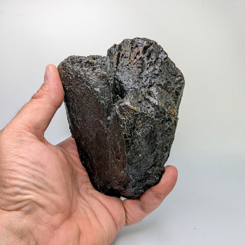 Cluster of black vivianite crystals, from a locality known for its metric vivianites.This piece comes from the clays of Anloua, Martap, Adamaoua Region in Cameroon.It measures 12.7 cm high by 8.9 cm wide and 5.5 cm at its thickest.Its weight is 519 grams.Old piece probably varnished to prevent...