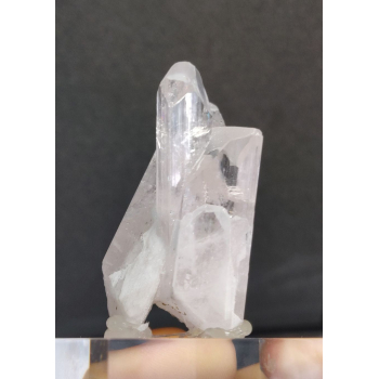 Danburite, Chalcedony San Luis Potosi MexicoGroup of several danburite cristal, all bright and clear. The color is light pink. That cluster is a floater, and the main cristal is doubly-terminated.