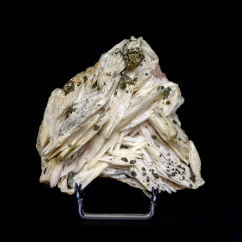 Beautiful presentation for this classic of German mineralogy, a beige-on-pink crested baryte, sprinkled with chalcopyrite crystals.It comes from a deposit inaccessible since 2004, the Dreislar mine, Medebach, Hochsauerlandkreis, Arnsberg, Germany.This specimen measures 7 cm long by 6.6 cm wide...