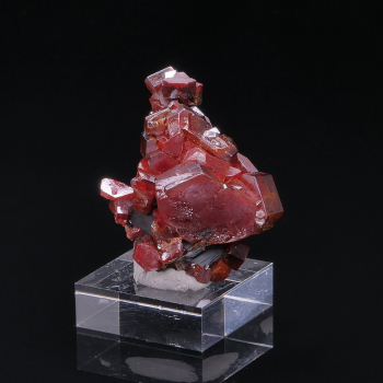Stocky and well formed crystals of Vanadinite red cherry on matrix from Morocco.4,30 x 3,70 x 3,30 cmReference : 2947