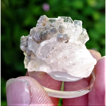 Set of baryta gems crystal white border and calcite (or smithsonite ??)2,5 x 2,3 x 2 cmReference : 0363
