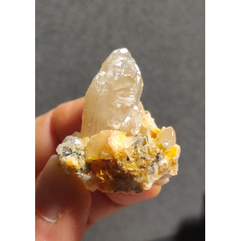 Hedgehog small quite thin and slightly smoky quartz from the heights of Contamines. A new discovery of summer 2020.8 x 6 x 4 cmReference : 0392