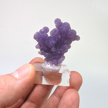 Beautiful quality purple chalcedony with a well-defined color.It comes from Mamuju, West Sulawesi Province, Indonesia.This sample measures 3.7 cm high, 3.5 cm wide and 1.3 cm thick.Its weight is 12 grams.(Measures outside the base)Additional photos and online ordering on the DGminéraux...