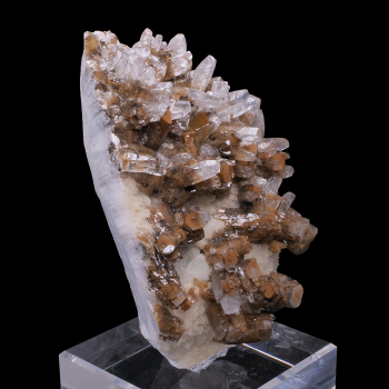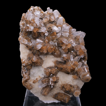 Impressive specimen of Calcite double generation on matrix from the Xia Yang mine in China. We can see the crystallization steps easily on this piece. The first generation is made of hexagonal crystals with a flat finish of brown Calcite, then the second generation of colorless Calcite is also...