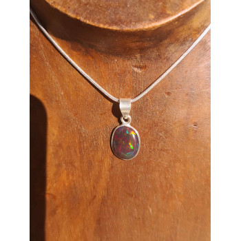 pendentif avec opale éthiopienne sertie en argent 925 traitement par fumée dimensions du bijoux : 1.6 x 1 x 0.3 cm provenance de la pierre : Ethiopie, mine Welo taille et sertissage réalisés en France