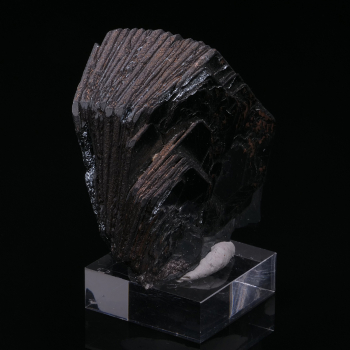 Romanechite (manganese oxide containing barium) in the shape of a black coral, contrasted by spheres of a yellow ferric oxide, probably goethite.It comes from a 2020 discovery made in Veszprém, Veszprém county, Hungary.This specimen measures 2.9 cm long by 1.7 cm wide and 1.4 cm...