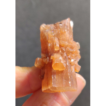 Beautiful presentation for this classic of German mineralogy, a beige-on-pink crested baryte, sprinkled with chalcopyrite crystals.It comes from a deposit inaccessible since 2004, the Dreislar mine, Medebach, Hochsauerlandkreis, Arnsberg, Germany.This specimen measures 7 cm long by 6.6 cm wide...