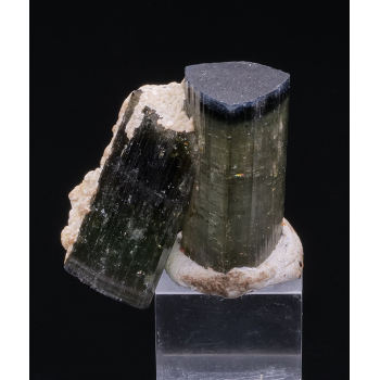 Nice grouping of two Tourmaline de Pederneira. Backlit, this piece has a beautiful transparency.3,40 x 3,60 x 2,50 cmReference : 3108