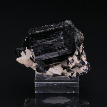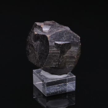 Iron Cross twin for this specimen of Goethite pseudomorph after Pyrite. The Pyrite is not at all visible on the surface, everything is covered with a thin layer of Goethite that gives this shiny black brown appearance.3,80 x 3,80 x 3,50 cmReference : 1281
