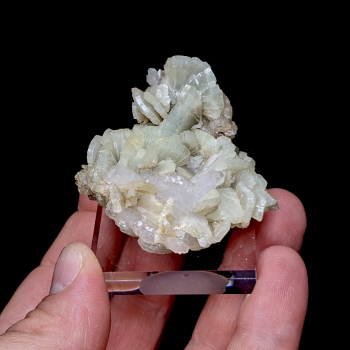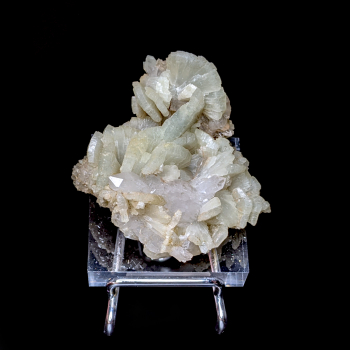 Green prehnite with lamellar crystals bearing a quartz cluster.It comes from Djebel Melh, Figuig, Oriental Region in Morocco.This mineral measures 5 cm long, 4.9 cm wide and 2.5 cm high.Its weight is 37 grams.(Measurements off base)Reference: 1332Additional photos and online ordering on the...