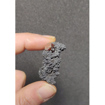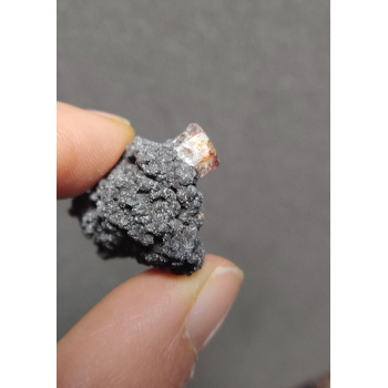 Vanadinite, Pyrolusite Taouz MaroccoIsometric cristal, translucent, shiny. On goethite, with pyrolusite