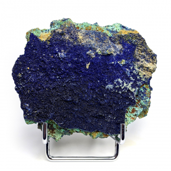 Brilliant azurite finely crystallized on both sides of the sample, associated with malachite.It comes from the prefecture of Oujda-Angad, Oriental Region, Morocco.This piece measures 8.7 cm long by 6.8 cm wide and 2.8 cm at its thickest.Its weight is 157 grams.Reference: 1665Additional photos and...