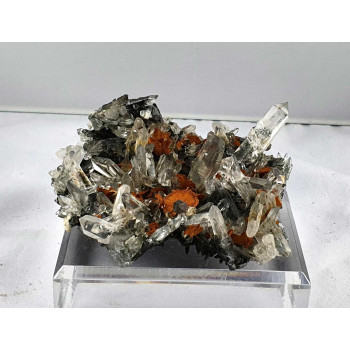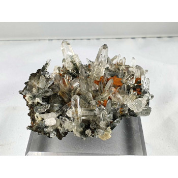 Many clear quartz surmounted by smaller quartz that offer a beautiful shine to this specimen from the La Gardette mine in France.4,30 x 3,60 x 3,40 cmReference : 3613