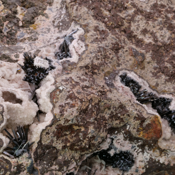 This is a very very large specimen with fine and long black metallic Goethite crystals, from the famous locality of Chaillac in France. Piece to collect as is, or to divide into several, even if careful the matrix is very solid and the Goethite crystals very fragile.23 x 14,20 x 9,80 cmReference...