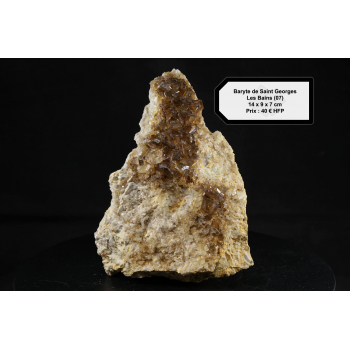 Baryte de Flaviac – Ardèche (07) - FranceMinéraux : Baryte + quartzDimension (cm - L x l x H) : 10 x 6 x 6 cmPoids : 396 grammesPrix : 25 € HFPInformations complémentaires :Voici un groupe de cristaux de baryte de Flaviac. Les cristallisations sont tabulaire, d'une couleur...