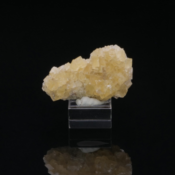 Shiny yellow fluorite cubes. The color is intense, beautiful quality for this miniature from Giromagny in France. Small crystals of Galena are found on the sides and back of the piece.4,30 x 2,50 x 2 cmReference : 4527
