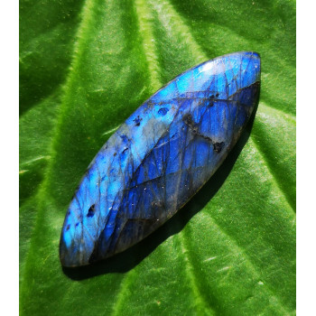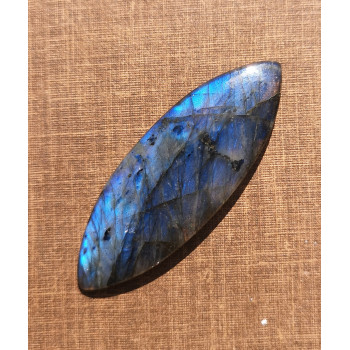 cabochon labradorite bleue Provenance : madagascar Taille réalisée en France Possibilité de percer pour mise en pendentif 5.5 x 1.9 x 0.6 cm