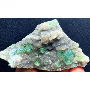 Green Fluorite on Quartz, Sichuan, China8,5 x 5 x 2 cm0105-ClCa