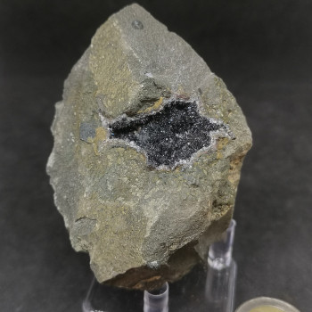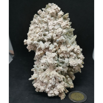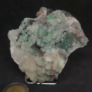 Floating pyromorphite of a rather exceptional size. The piece weighs just over 800 grams. The crystals go from a bright green to a khaki green. Some crystals have a melted aspect while others will have a barrel habit. 10,3 x 9,5 x 7,4 cm0089-LCJD
