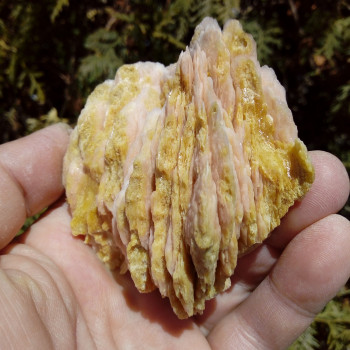 Group crested barite bicolor, pink and yellow. The yellow areas were dissolute and recrystallized!8,5 x 8,5 x 3,8 cmReference : 0181
