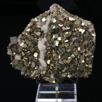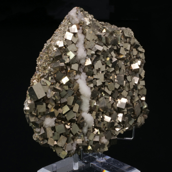 Plate of bright and well-formed pyrite cubes associated with calcite, all on massive pyrite matrix. This specimen comes from the famous Huanzala mine in Peru.10,80 x 9,80 x 2,70 cmReference : 3978