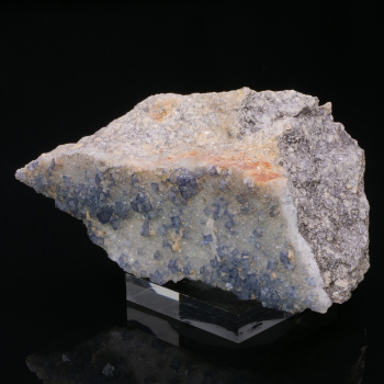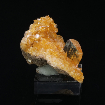 Small crystals of intense orange Wulfenite on Baryte from Lantignie in France.9,50 x 9 x 5,40 cmReference : 3989