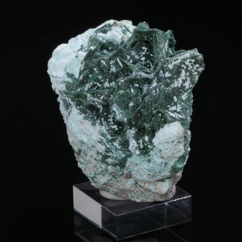 Prehnite crystals forming like butterflies of a bright green, for some included Actinolite that color the crystals in very dark green. Specimen from Boulemane in Morocco.9,30 x 7,60 x 6,70 cmReference : 3998