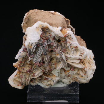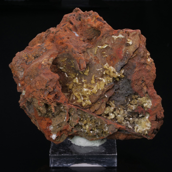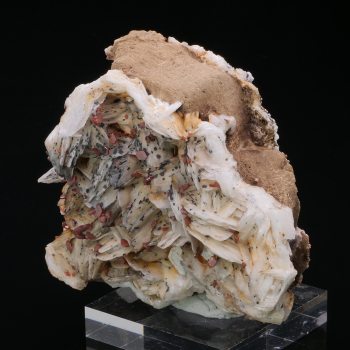 Nice color contrast between cherry red vanadinite crystals, white baryte, the oxidation of parts of the baryte into black and brown matrix. Specimen from Couda in Morocco.8,70 x 8,10 x 5,30 cmReference : 3982