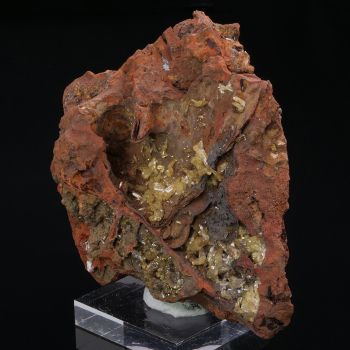 Yellow Adamite crystals strewn all over the coin. They have a very nice homogeneous color and are well crystallized. Adamite from the Ojuela mine in Mexico.12,40 x 10,90 x 5,40 cmReference : 3993