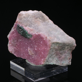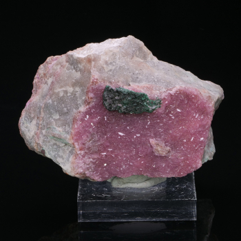 Crystals of Cobaltoan Calcite present on the front and back of the piece, associated with Malachite. Specimen from Musonoi mine, DR Congo.9,10 x 6,60 x 4,40 cmReference : 4025