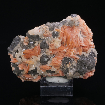 Cerusite crystals associated with orange Baryte, all on Galena which offers a beautiful color contrast to this specimen from the mine Les Dalles in Morocco.8,20 x 6,10 x 3,70 cmReference : 4026