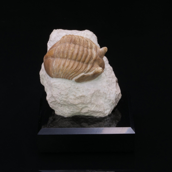 A fine example of Asaphus punctatus. The region in which these trilobites lived has undergone dramatic changes in salinity and turbidity, and trilobites have been able to make rapid evolutionary adjustments, geologically speaking. These adjustments were thought to make it easier for them to see...