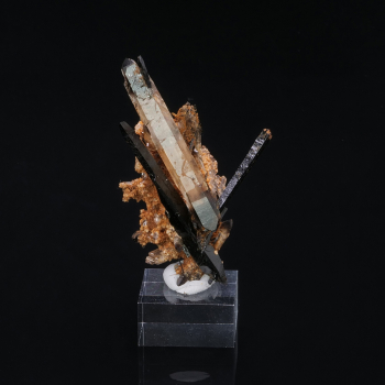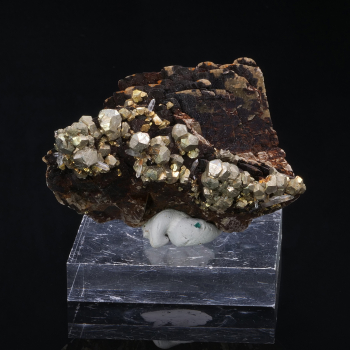 Nice shiny specimen presenting crystals of Pyrite and Quartz on Siderite from the Mesage mine in France. Discovery in 2015.6,40 x 4 x 4 cmReference : 3915