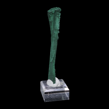 Malachite with irisations, typical from the Shilu mine in China. Double face for this specimen: one side with irisations, light to very dark green, on the other Malachite all in very dark green velvet, shiny.11,10 x 8,70 x 6,10 cmReference : 3907