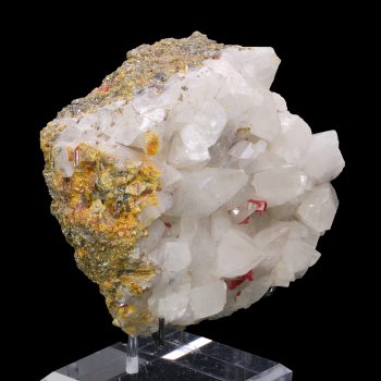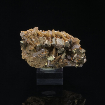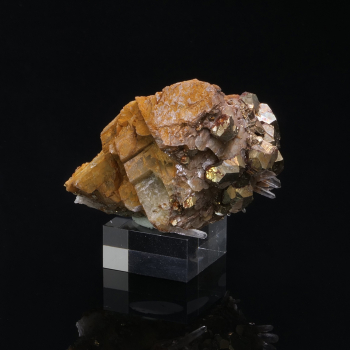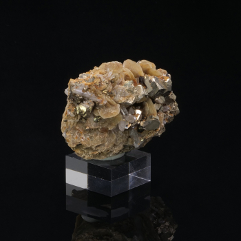 Nice shiny specimen presenting crystals of Pyrite and Quartz on Siderite petals from the Mesage mine in France. Discovery in 2015.5,30 x 2,90 x 3,70 cmReference : 3948
