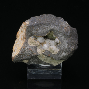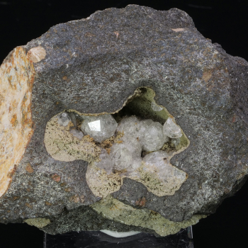 Piece discovered in the famous Tsumeb mine in Namibia. It has white Calcite crystals translucent on Mottramite matrix botryoidale very dark green almost black in some places.10,50 x 7,80 x 5 cmReference : 3877