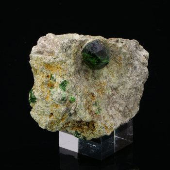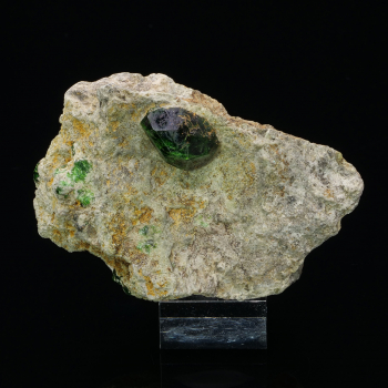 Demantoid garnet green bottle on matrix from Takab in Iran. The colour is intense and well pronounced with typical local streaks.5,80 x 4 x 3 cmReference : 3692