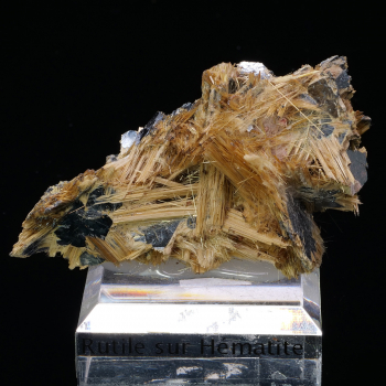 Superb piece from Brazil presenting crystals of golden Rutile in epitaxy on black mirror hematite. The crystals of Rutile look fluffy and really form like a hair on the hematite.5,90 x 3,60 x 2,20 cmReference : 3693