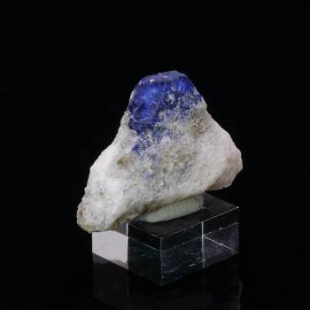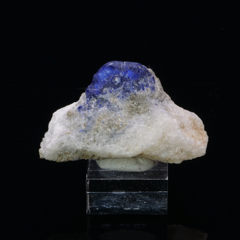 Crystal of Lazurite intense blue king perched on its immaculate white Calcite matrix that offers a beautiful color contrast.4,20 x 2,70 x 2 cmReference : 3687