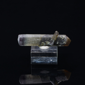 Rare bi ending crystal of tricolour tourmaline from Tsarafara South in Madagascar: a violet and a yellow ending, the body is divided between dark green and light green. Superb specimen.4 x 1,40 x 1,20 cmReference : 3688