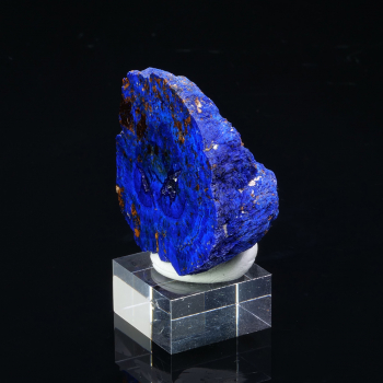 Azurite nodule with intact Cerussite crystals embedded in the Azurite, which has been cut and polished of which here is a half. The colour is king blue and intense, the nodule is also very pretty on the outside. Specimen from the Rubtsovsk mine in Russia.4,50 x 3,70 x 1,70 cmReference : 3561